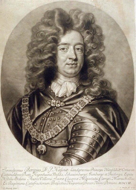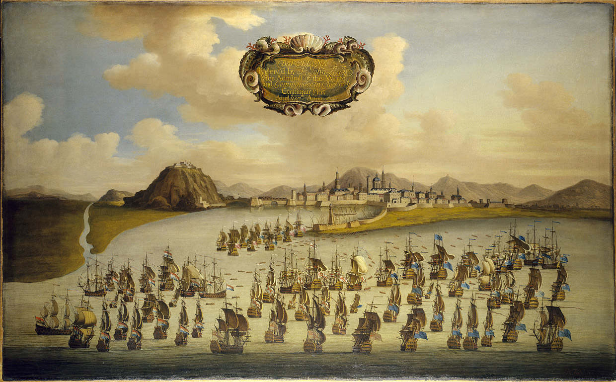 El 15 de septiembre de 1705, nada más capturar el castillo de Montjuic, en cuyo asalto perdió la vida el príncipe de Darmstadt —uno de los principales valedores militares de la causa austracista, a quien vemos abajo en un grabado de la  época—, los aliados comenzaron a bombardear Barcelona desde allí. El 9 de octubre la ciudad capitulaba y el 22 del  mismo mes el archiduque entraba en la ciudad. El 7 de noviembre juraba las Constituciones catalanas, y a continuación convocaba sus Cortes.