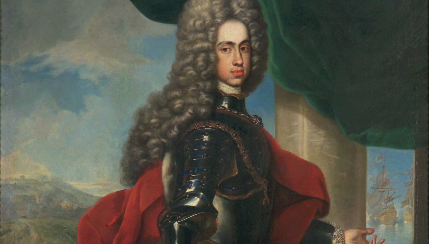 El año 1704 fue el annus horribilis de la causa borbónica. Portugal se unió a la alianza austracista; en Málaga su flota combinada sufrió una gran derrota; y, en Centroeuropa perdieron el apoyo de Baviera al ser derrotados en la batalla de Blenheim. Pero el hecho de armas que mayor repercusión tuvo -y aún tiene- fue la captura de Gibraltar por británicos y holandeses. Las cosas parecían ponerse fáciles para el archiduque Carlos, a quien puede verse en el cuadro de arriba de Frans van Stampart (siglo XVIII), ahora en suelo peninsular.