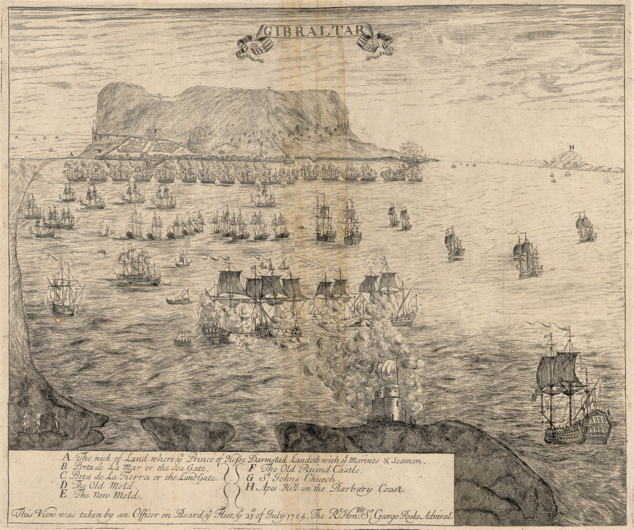 View of Gibraltar taken by an officer of Admiral Sir George Rooke’s fleet on 21 July 1704 or 1 August 1704