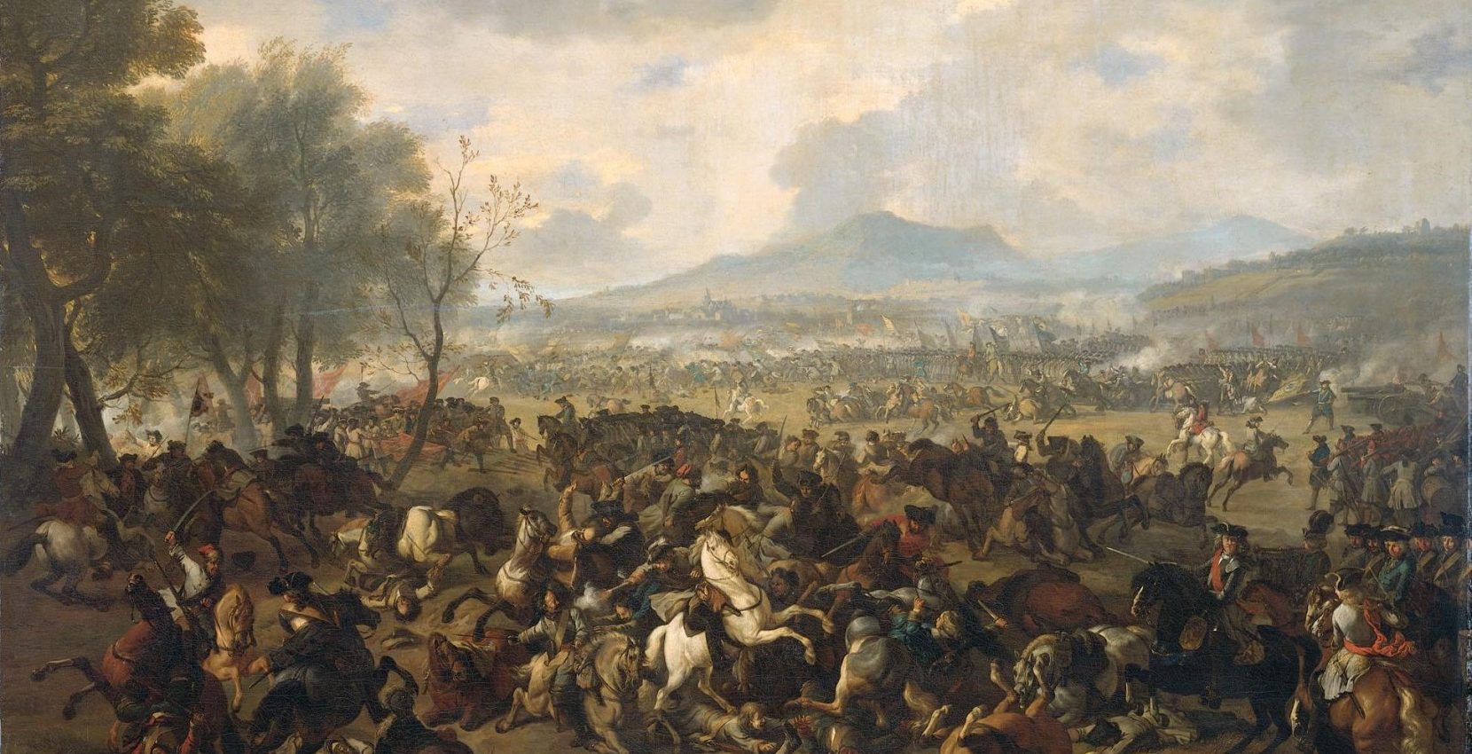 La favorable posición borbónica que había provocado el cierre del Reino de Murcia a los austracistas y el avance por Alicante contrastó con las derrotas en el centro de Europa a lo largo del año de 1706: en la importantísima Batalla de Ramillies (cuyo cuadro de Jan van Huchtenburgh encabeza esta entrada) fueron hechos prisioneros 15.000 soldados franceses, lo que favoreció el avance del duque de Marlborough sobre el Flandes español, incluyendo Bruselas, Brujas, Lovaina, Ostende, Gante y Malinas. Inmediatamente estas ciudades y territorios reconocieron la soberanía del archiduque, lo que le dio ventaja a la hora de adquirir esos territorios en el Tratado de Utrecht. Además, tal vuelco conllevó el levantamiento del asedio de Turín, lo cual permitió al duque de Saboya recuperar la iniciativa, y tomar Milán el 26 de septiembre. Con su captura, el dominio borbónico terminó por quebrantarse con la conquista del Reino de Nápoles por el príncipe Eugenio de Saboya (a la derecha, en un retrato de Jacob van Schuppen, 1718) para el austriaco.